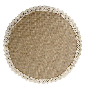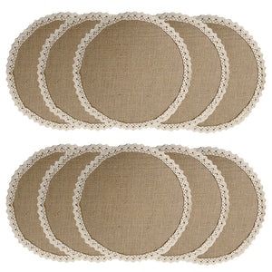 Rustic Linen Placemats with Lace Trim - 10x10 inches Yellow Jute Farmhouse Style (Set Includes Coasters)