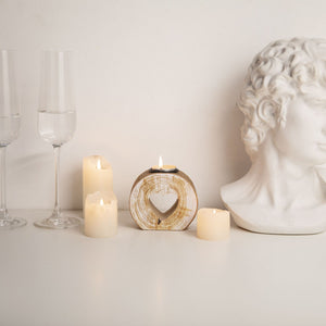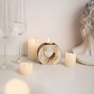 Rustic Wooden Candle Holder with Heart Cutout - 4.1"×2"×3.7" Log & Metal Candle Vessel for Cozy Home Ambiance