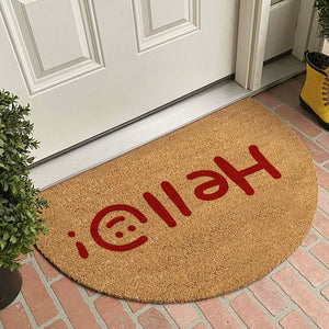 Semi-Circular Coir-Like Door Mat, 23.6x35.4 Inch Entryway Rug for Dirt Trapping, Non-Slip Welcome Mat
