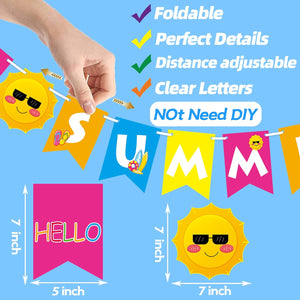 - Packaging Includes:1 Hello Summer Banner,30 Beach Hanging Cards,30 Foil Hanging Swirls