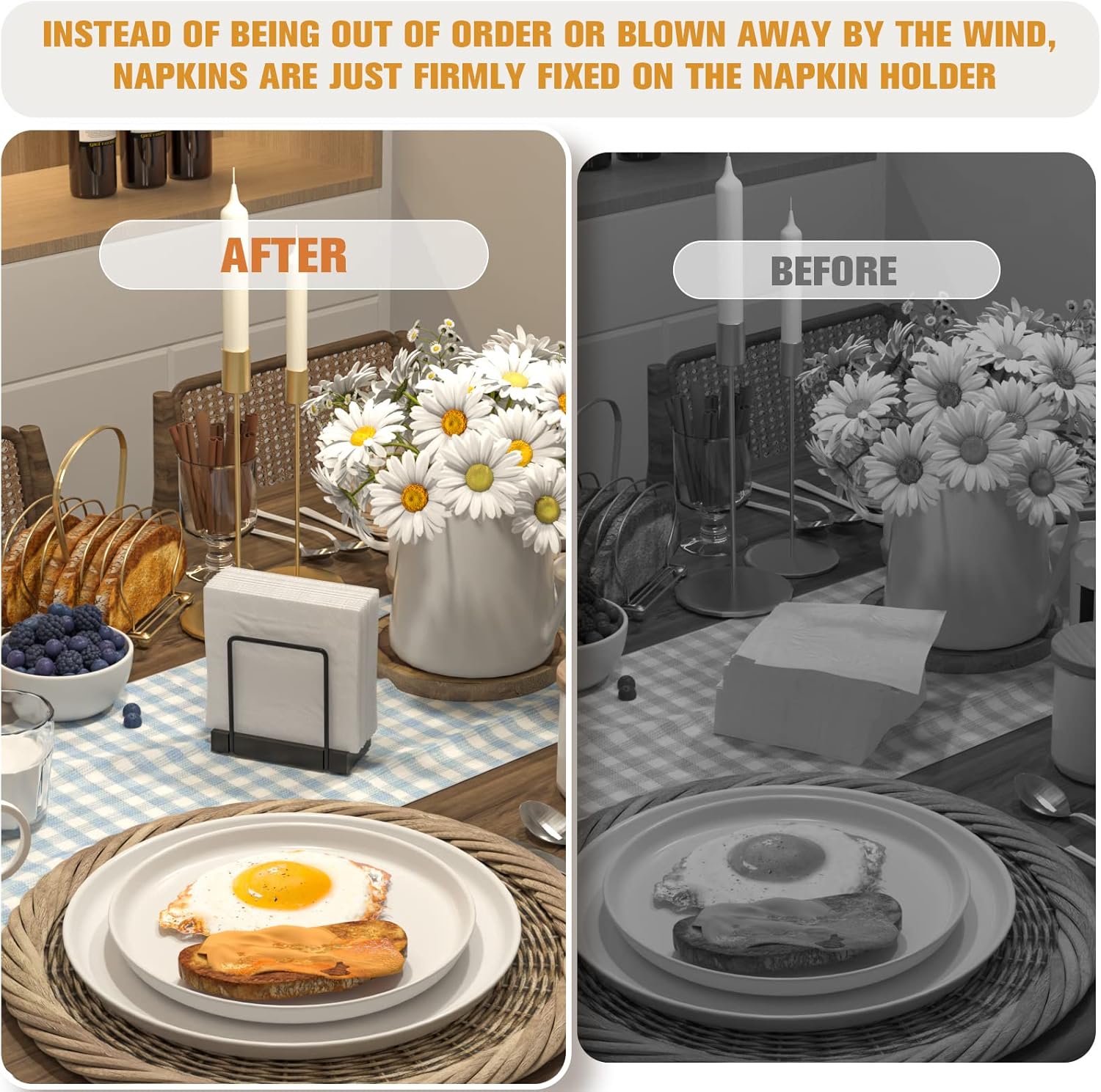 🏡 Universal Fit: Sleek silhouette blends with Any dining table (dining table/coffee table/kitchen countertop), complementing both modern and rustic décor. Compact size saves space without sacrificing style. 🖥️ Office Companion: Holds mail, or documents on desks; silicone base prevents slips on polished surfaces.