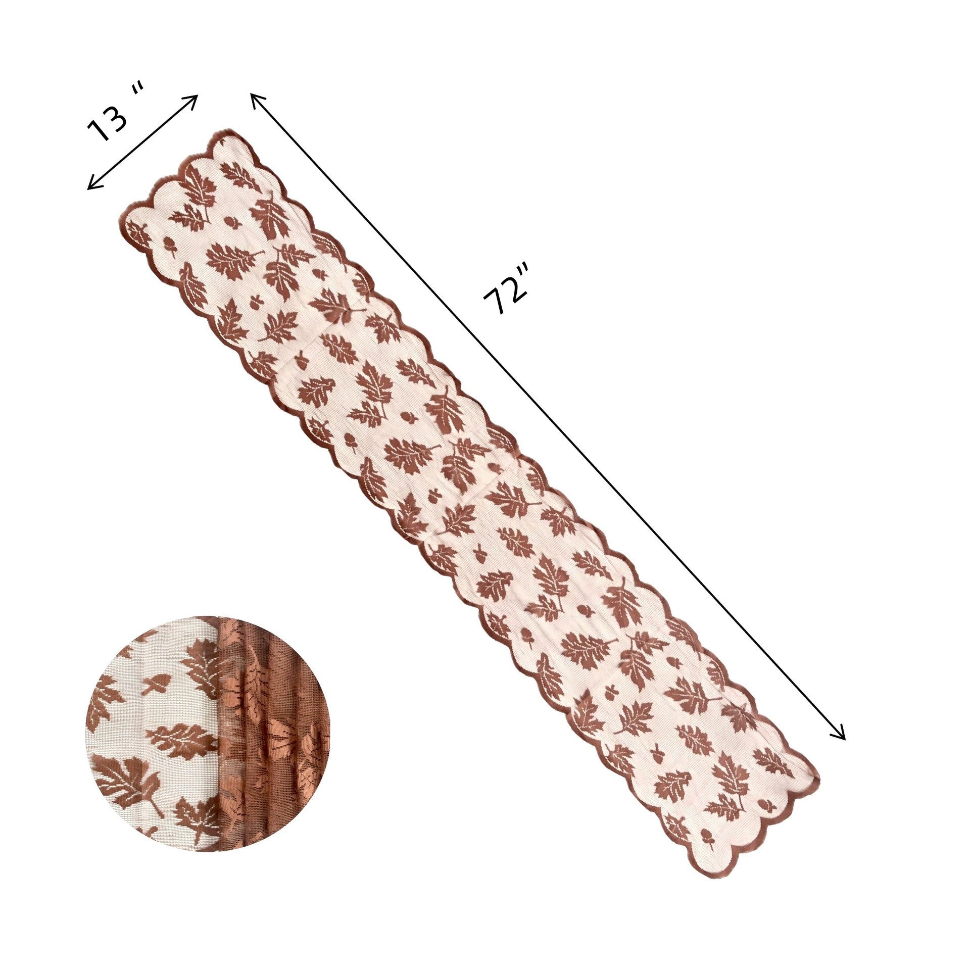 Thanksgiving Fall Leaves Table Runner - Elegant Brown Autumn Tablecloth for Dinner Parties Fireplace Decor & Harvest Celebrations