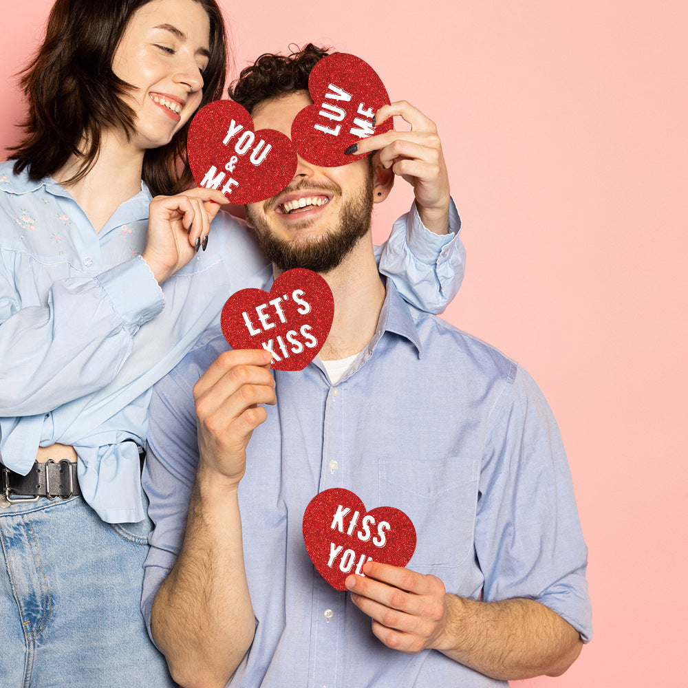 8 Playful Love Slogans: Pick from cute phrases like “Let’s Kiss,” “Luv Me,” and “XO XO” — each heart’s got a vibe as fun as your Valentine’s plans.