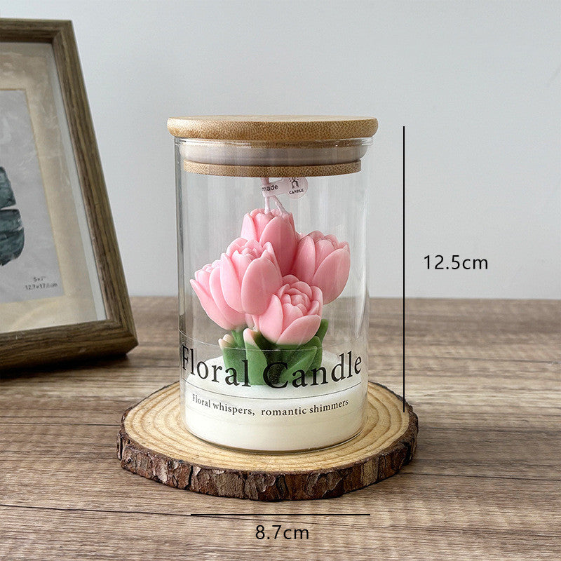 Valentine's Day Tulip Floral Aromatherapy Candle - Ins Vibe Gift Glass Jar Candle