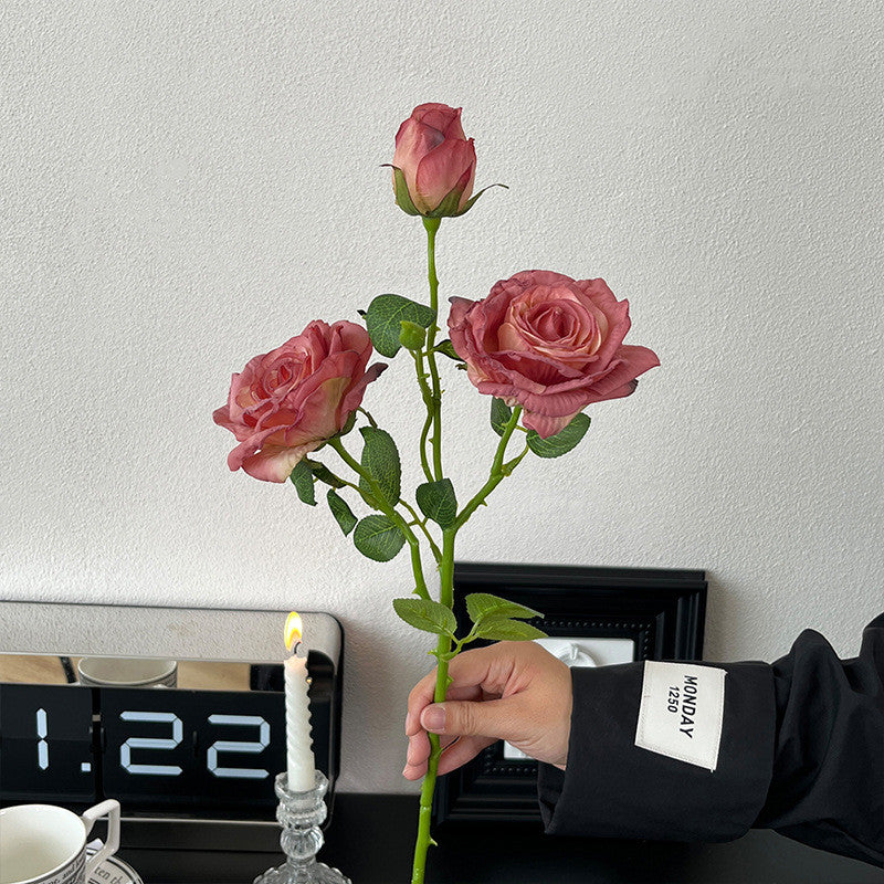 Vintage Dried-Look Artificial Rose Stems, 21.3" Blush & Terracotta Faux Flowers for Venue Styling
