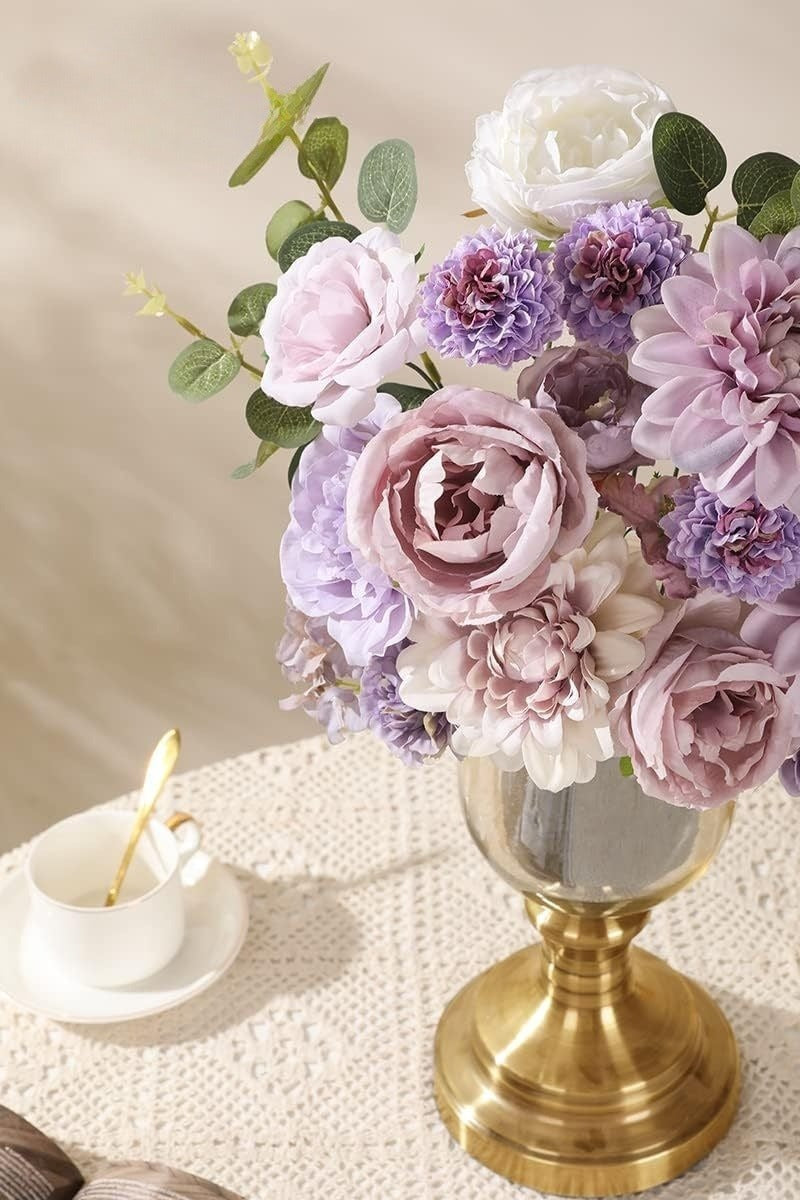 24-piece floral bouquet combo kit, including a curated mix of roses, dahlias, peonies, hydrangeas, 30 plastic-reinforced armored stems, jungle-inspired greenery, raffia ribbon and heat-seal accessories.