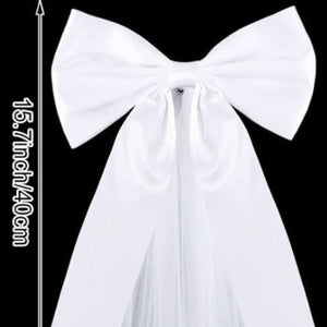 - Material: Satin fabric (bow) + lightweight fabric tulle