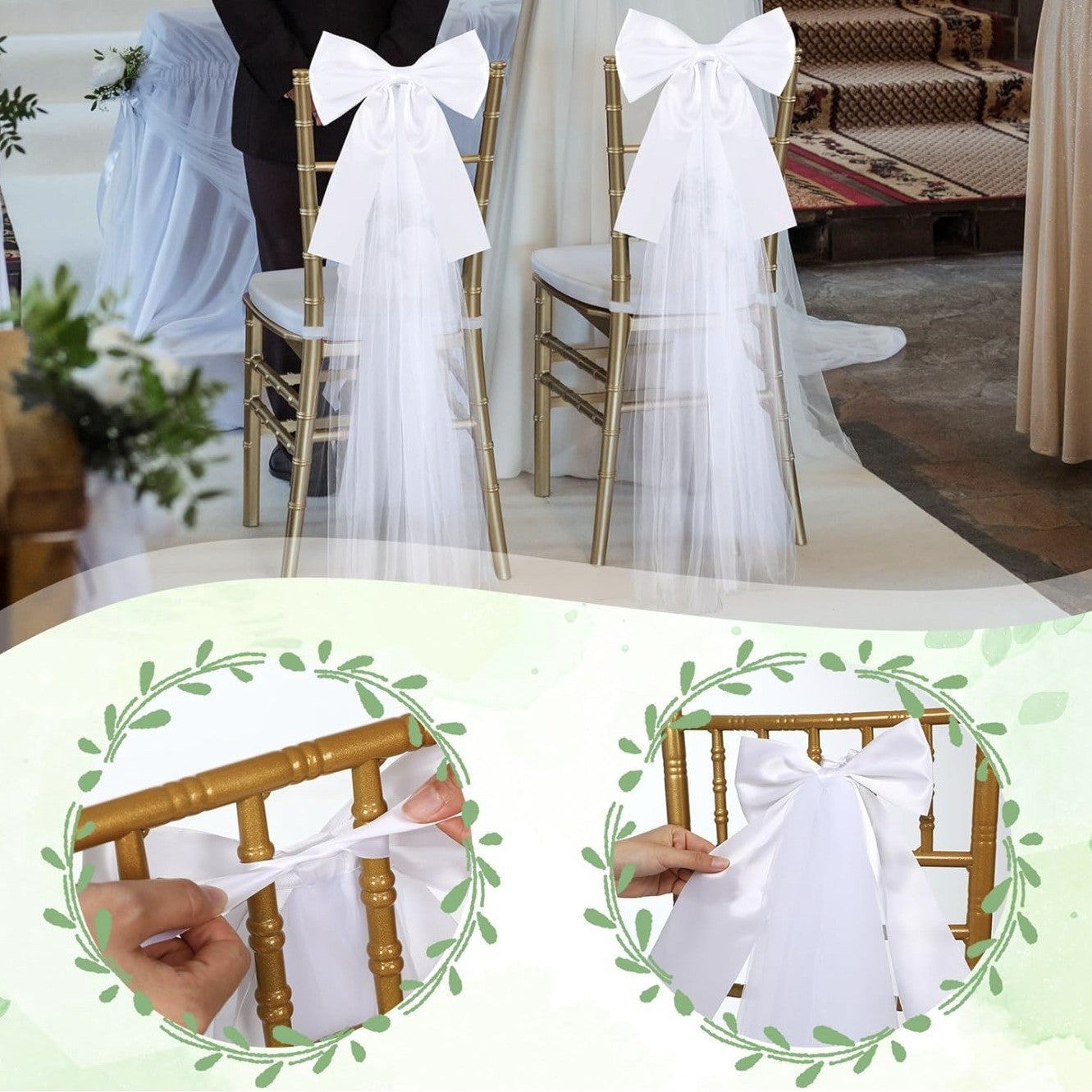 - Drape these bows on church pews to line ceremony aisles for an elegant, polished processional look.
