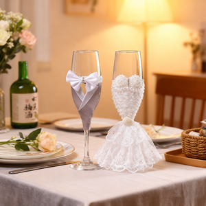 Wedding Champagne Flutes Set for Bride and Groom, Romantic Toasting Glasses