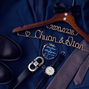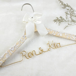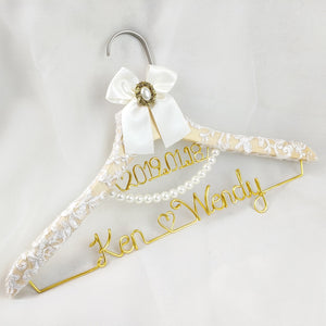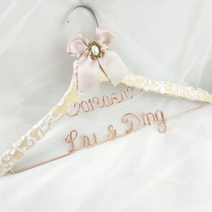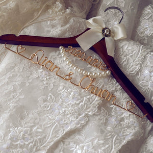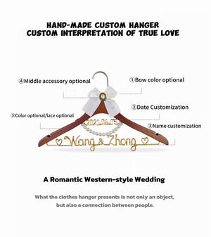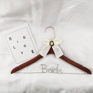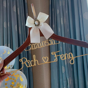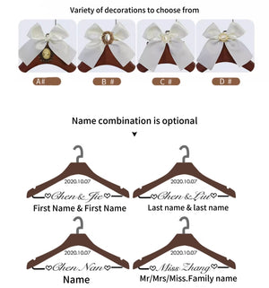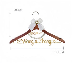 Bulk 2 Pcs Personalized Wedding Dress Hanger Custom Bride Name & Date Engraved on Gold Silver Wire Dark White Wooden Keepsake Hanger with Bow Colors Dress Notches Graduation Gown Wedding Gift Wholesale