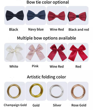 - Bow Ties: Black | Navy | Burgundy | Black/Red (silk-textured).