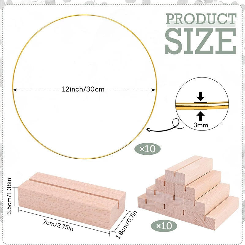 Wedding Gold Hoop Garland DIY Kit - 12” Metal Hoop with Wooden Base & 5 Bonus Flowers for Floral Wreath Decor