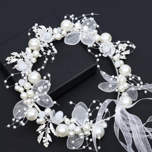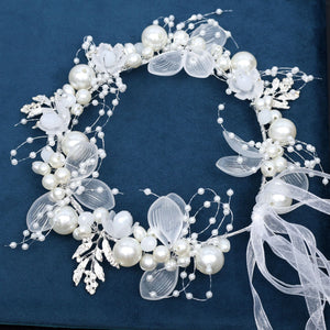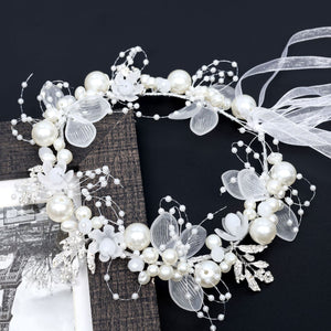 White Pearl Floral Wedding Headband - Elegant Bridal Hair Accessory