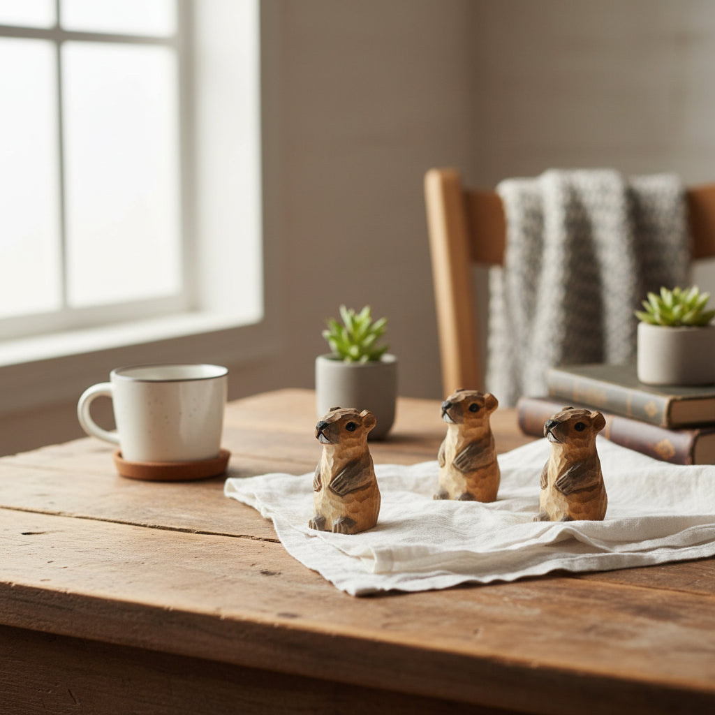 Wood Carved Marmot Decor & Keychain (2 Styles)