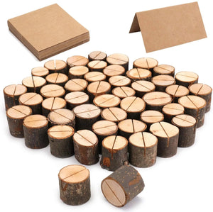 Premium Wooden Place Card Holders 30 Pack Rustic Wedding Reception Set with Kraft Cards Natural Wood for Bridal Dinner Party Decor