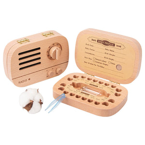 Wooden Baby Tooth & Hair Storage Box - Retro Radio Design - Memory Keeper